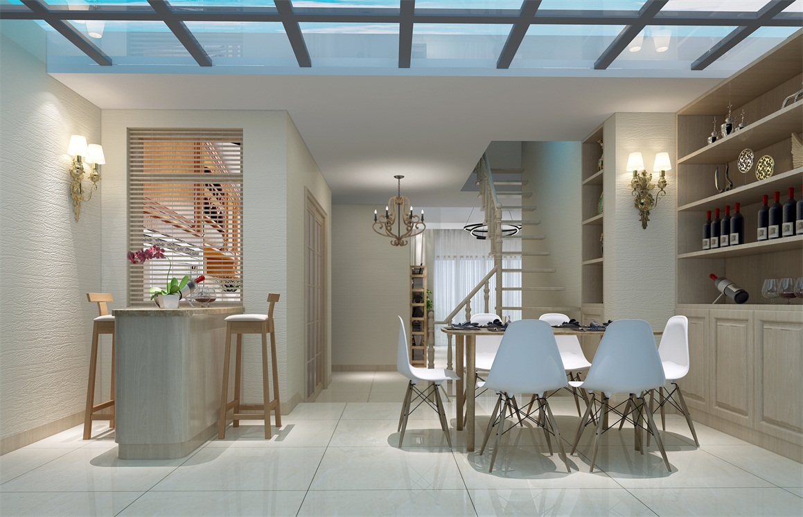 瓷磚、乳膠漆、實(shí)木線條。