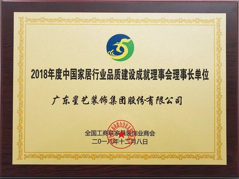 星藝裝飾當(dāng)選2018年度中國家居行業(yè)品質(zhì)建設(shè)成就理事會理事長單位