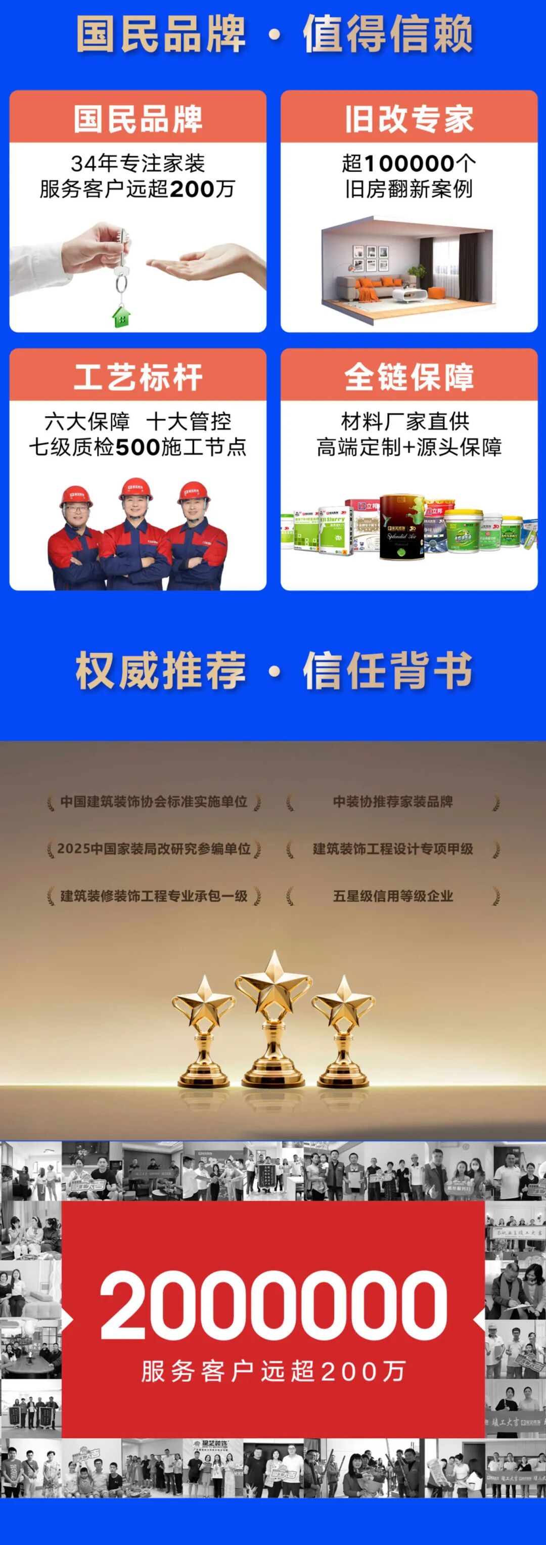 星藝裝飾堅信,一個好家的基礎(chǔ),必須是真材實料。我們提出:“集團直采,高端定制,源頭保障”,切斷一切假貨流通的環(huán)節(jié),將高品質(zhì)材料直接送達您家。