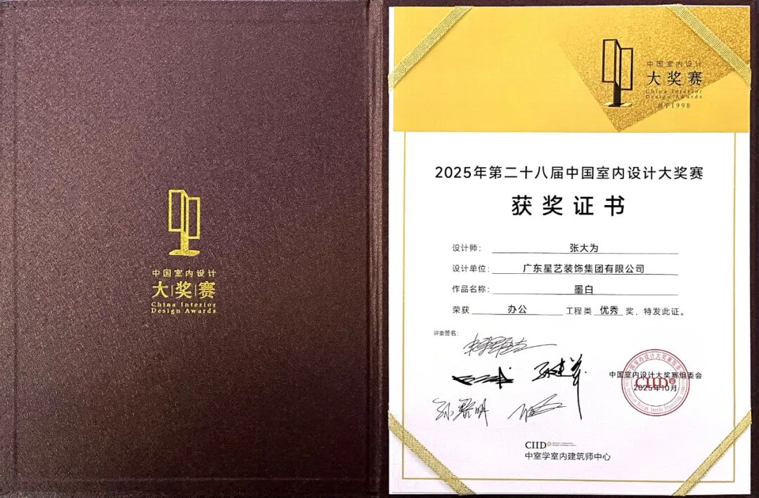 星訊 | 星藝裝飾榮膺2025CIID第二十八屆中國室內(nèi)設計大獎賽“卓越設計企業(yè)”