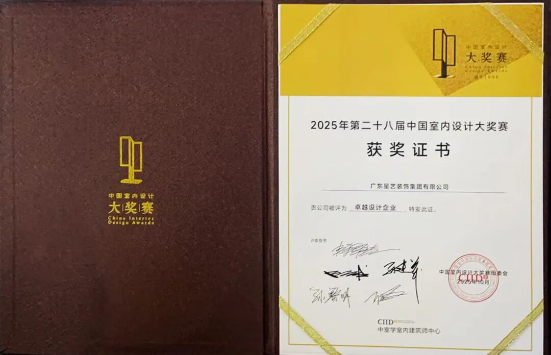 導讀:星訊 | 星藝裝飾榮膺2025CIID第二十八屆中國室內(nèi)設計大獎賽“卓越設計企業(yè)”