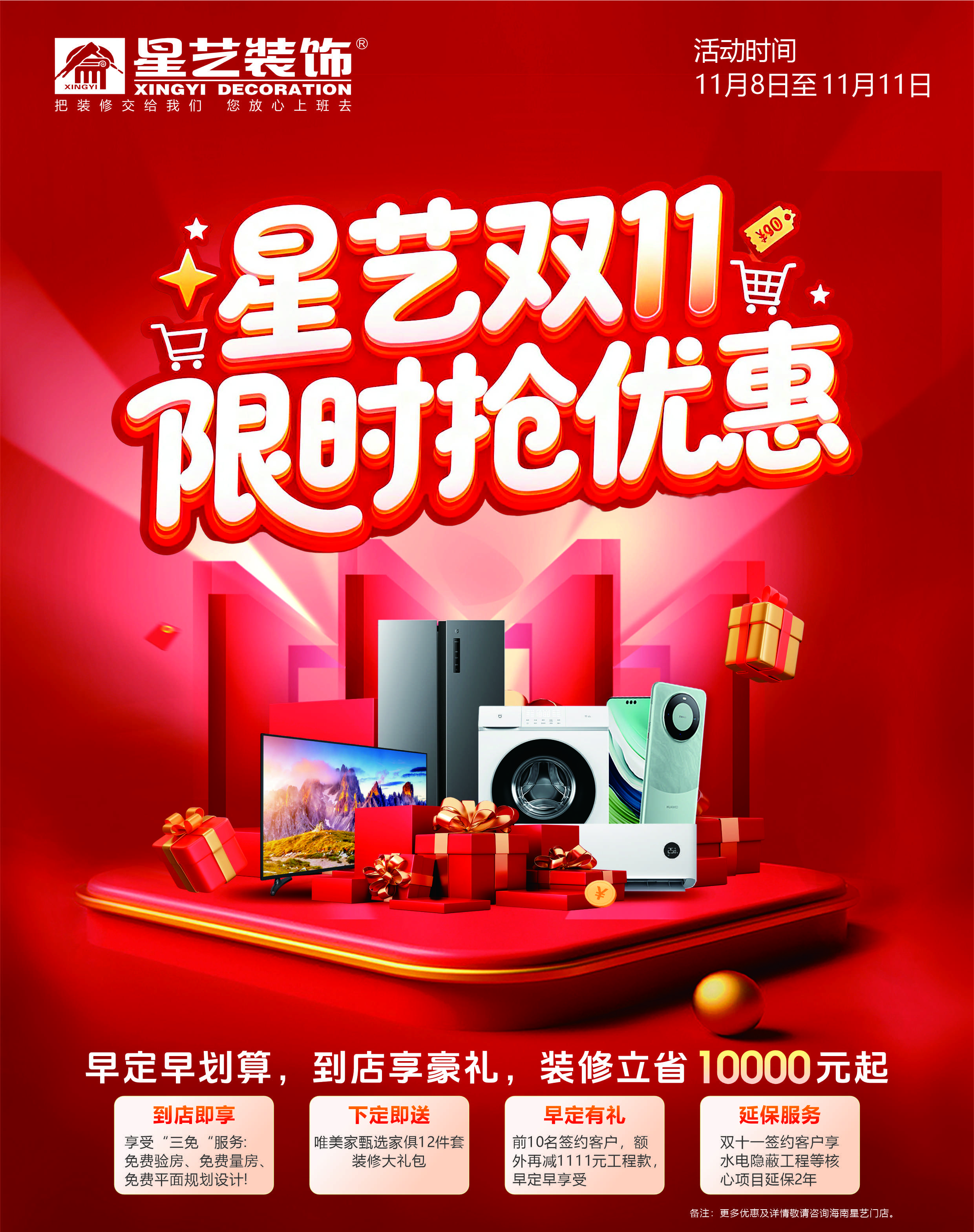 在這個(gè)雙十一,讓我們拋開繁雜的購(gòu)物選擇,專注于打造一個(gè)真正屬于您的溫馨家園。星藝裝飾愿以34年的專業(yè)積淀,為您構(gòu)筑理想中的生活空間,讓家的溫暖,從此開始。