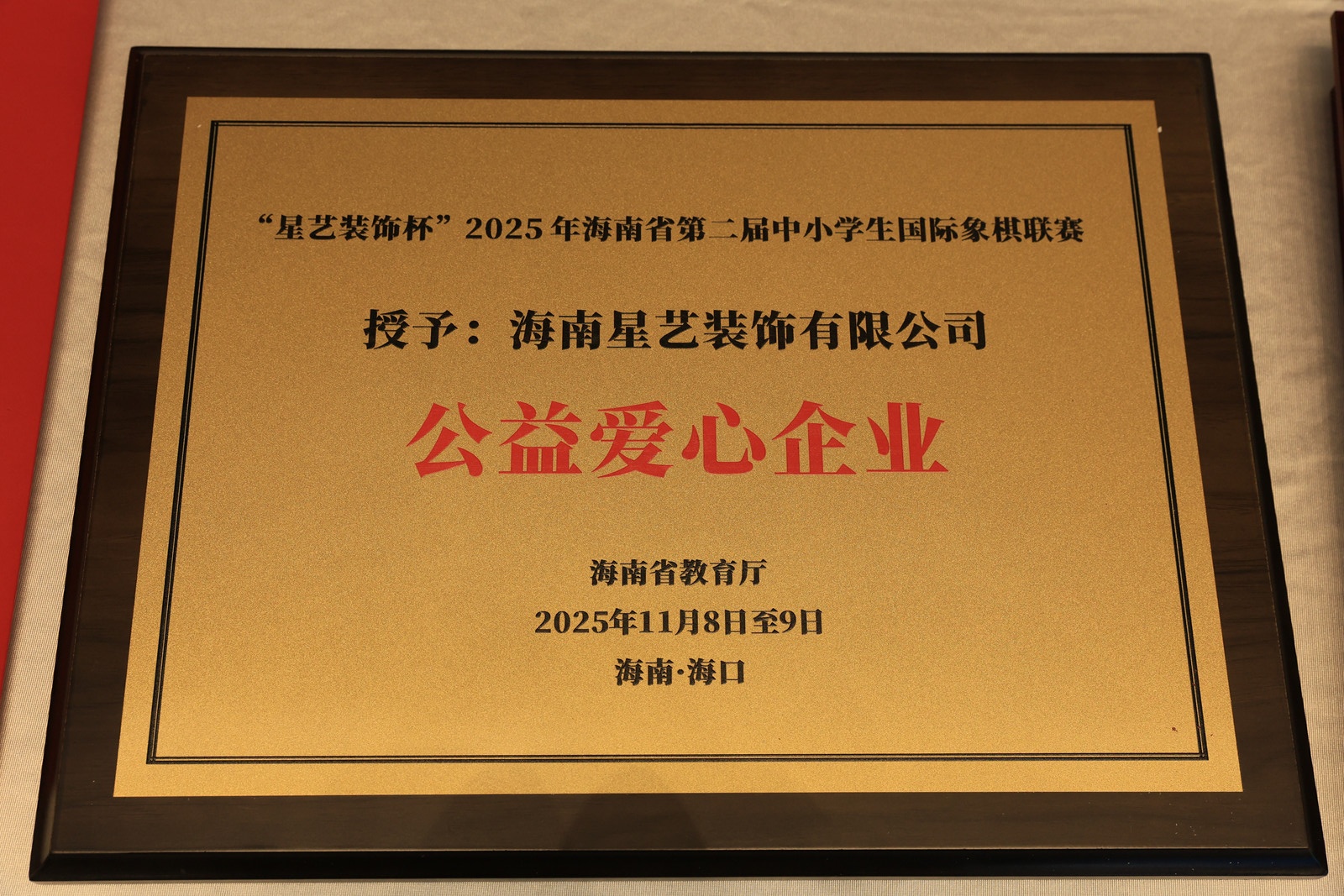 海南省中小學生國際象棋聯(lián)賽圓滿落幕,海南星藝裝飾獲授“公益愛心企業(yè)”